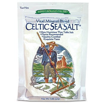 Fine Ground Celtic Sea Salt 1/2 lb Supplement Facts Serving Size: ? tsp (0.9 g) Servings Per Container: 252 Amount per Serving: Calories 0 Calories from fat 0 Total fat 0 g Trans fat 0 g Sodium 330 mg Potassium 1 mg Total carbohydrates 0 g Sugars 0 g Protein 0 g Magnesium 3 mg Chloride 520 mg Partial Analysis: Chloride 58% Magnesium .36% Potassium .09% Sodium 36% Sulfate 1.26% Calcium .36% Vital Mineral Blend- More nutritious than table salt Doctor recommended Quality certified Exquisite taste Nature's Original Seasoning- Celtic Sea Salt is authentic whole salt from one of the most pristine coastal regions of France. Hand-harvested and dried by the sun and wind, Celtic Sea Salt contains no anti-caking or bleaching agents, or other additives of any kind. Celtic Sea Salt is highly recommended by many health professionals and culinary chefs. It's no surprise why. With a natural balance of minerals and trace elements, Celtic Sea Salt is a beneficial addition to most diets. As a natural salt, Celtic Sea Salt is an important source of sodium chloride, which in small amounts is vital for good health. Unlike ordinary table salts, Celtic Sea Salt provides potassium, magnesium and other important nutrients. Celtic Sea Salt also contains a trace amount of iodine, but not enough to meet specific dietary recommendations. Celtic Sea Salt imparts a rich, exceptional flavor that enhances the taste of any dish. Use as a replacement for ordinary table salt in cooking, baking or to season dishes before serving. In order to preserve optimal freshness and taste, we recommend that you store Celtic Sea Salt in a glass, wood or ceramic container with a loose fitting lid. Celtic Sea Salt is harvested by the Paludiers (salt farmers) of Brittany using a time-honored farming method that preserves the balance of ocean minerals. Each salt harvest is carefully inspected, and the cream of the crop is hand-selected to bear the name of Celtic Sea Salt.